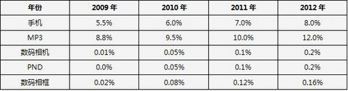 表2 2010-2012年中國主要消費電子產品應用OLED面板滲透率預測