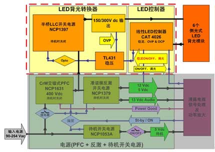 圖3:安森美半導體46英寸液晶電視電源參考功能框圖