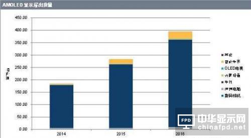 許多制約AMOLED發展的因素,如生產效率低下,收益率管理問題,較高投資成本及發光材料壽命較短,在2015年得到了解決,從而提升了產量。OLED已經開始在諸多領域應用,特別是智能手機、智能手表、汽車顯示屏、家電、近眼虛擬現實(VR)設備和電視機。Hsieh補充說:“產量的提升和成本降低吸引了更多設備制造商在其產品中使用AMOLED顯示屏。”