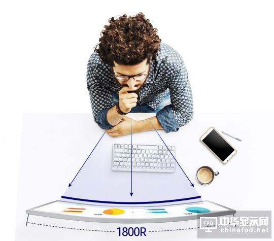 當(dāng)然,曲率也不是越小越好,畢竟眼睛不像耳朵長(zhǎng)在兩邊,太小的曲率壓根就沒(méi)法正常觀看。在三星新一代曲面顯示器中,采用1800R的曲率,不僅彎曲明顯,而且也貼合人眼習(xí)慣,營(yíng)造出身臨其境的沉浸感。