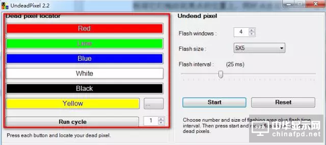 相對而言,最安全和最方便修復(fù)亮點(diǎn)的方法還是使用軟件,從這類軟件運(yùn)行原理來看,就是利用高頻率隨機(jī)交替開關(guān)紅、綠、藍(lán)三種顏色,刺激亮點(diǎn)直至其消失,對顯示屏幕沒什么影響。這里我們用Undead pixel這個軟件來舉例。