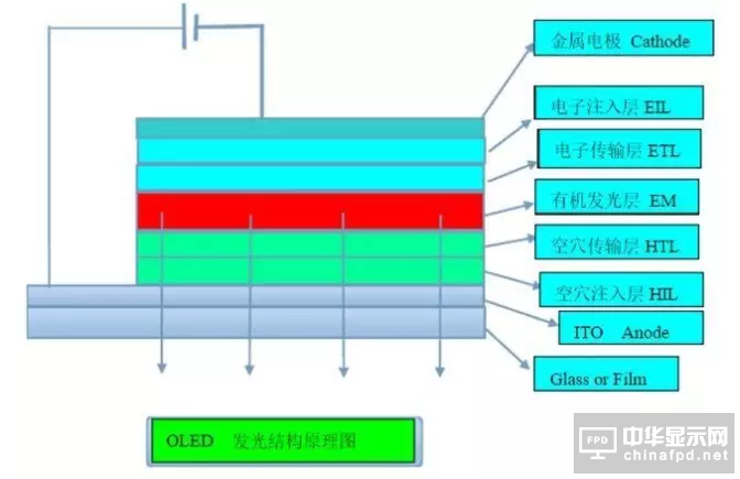 (3)層狀陰極。這種陰極是在發光層與金屬電極之間加入一層阻擋層,如LiF、CsF、RbF等,它們與Al形成雙電極,可得到更高的發光效率和更好的I-V特性曲線。阻擋層可大幅度的提高器件的性能。