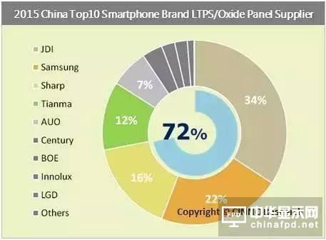 2015年國(guó)內(nèi)手機(jī)品牌LTPS/Oxide顯示屏供應(yīng)商份額預(yù)估