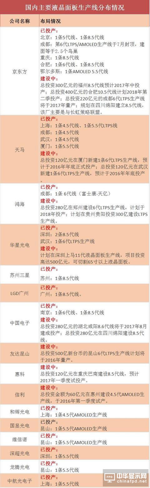 深超和京東方:由于深超和京東方也在大幅增加LTPS面板的供貨量,2015年國(guó)內(nèi)面板企業(yè)在國(guó)內(nèi)前十大手機(jī)品牌中使用LTPS面板的比重突破20%,市場(chǎng)份額同比增加約15%。2016年京東方成都AMOLED“超級(jí)工廠”7月封頂,建面等于2.5個(gè)鳥巢。