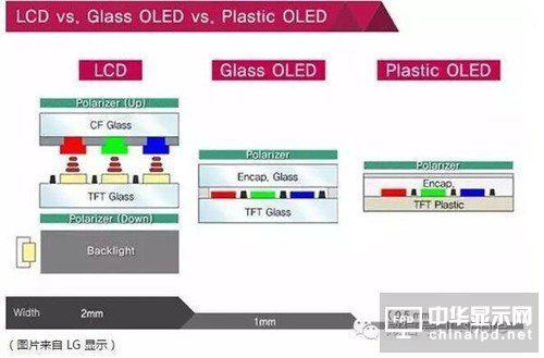 這張是張老圖,雖然這兩年TFT-LCD通過In-cell等各種技術來降低帶觸摸的整體厚度,但總的來說,AMOLED還是要比TFT-LCD薄。