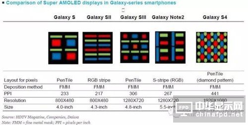 而三星為了讓AMOLED蒸鍍良率提升,采用了各種PenTile來生產(chǎn)。