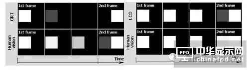 可以看到液晶顯示器,每一幀內(nèi)像素總是在發(fā)光,所以液晶顯示器就被稱之為“全余暉”(Full Persistence)顯示。