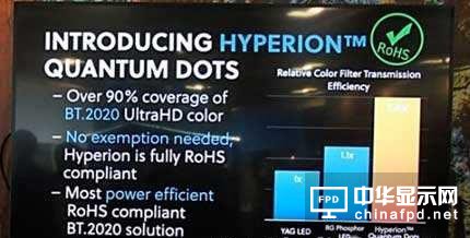 不過,SID 2016的展會(huì)上出現(xiàn)了不使用Cd的量子點(diǎn)展示。而且,在此次展會(huì)上,量子點(diǎn)陣營為對(duì)抗有機(jī)EL而發(fā)動(dòng)攻勢(shì)的展示也比較多。下面來看一下展區(qū)內(nèi)的演示情況。