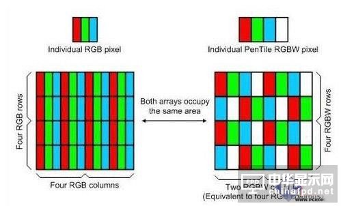 Pentile排列是通過紅綠和藍(lán)綠兩套子像素來構(gòu)成花,其中一套帶有共享性質(zhì),Pentile排列下雖然畫面分辨率能到標(biāo)稱值,但在靜態(tài)畫面特別是文字 閱讀時(shí)有明顯弱點(diǎn),而RGB排列則一直是被推存為最和諧的排列方式。不過隨著時(shí)間的推移對(duì)Pentile排列的糾結(jié)問題淡出視野。