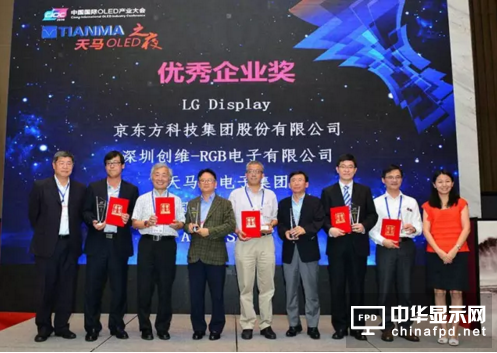 中國光學光電子行業協會液晶分會秘書長梁新清、日本畫質學會副會長麻倉憐士、深圳市人民政府外事辦公室國際化促進處副處長李麗蓉向天馬微電子集團、京東方、LG Display、創維集團、AP SYSTEMS、昆山國顯光電頒發“優秀企業獎”