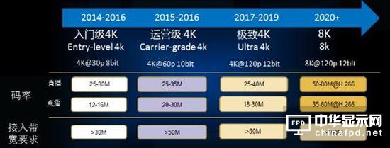 真正意義上的4K片源稀少只是一方面,更為重要的影響因素是因為網絡帶寬的問題。一般來說,觀看4K畫質電視節目需要消耗6M/S的流量,即對帶寬每秒傳輸速率要求為6M/S=6144kb/s。根據1M寬帶的傳輸速率為1Mb/s=1000*1000b/s=1000Kb/s=1000/8KB/s=125KB/s進行換算,4K畫質的帶寬至少要為6144÷125≈50M,因此傳輸1路4K電視至少需要50M以上的帶寬,同時這樣計算僅為理論值,真實環境下可能會要求更高。而我國目前20M以上寬帶用戶的總數比重僅為21.1%,所以要想通過網絡來觀看真正意義上的4K片源恐怕還需要一定時間。