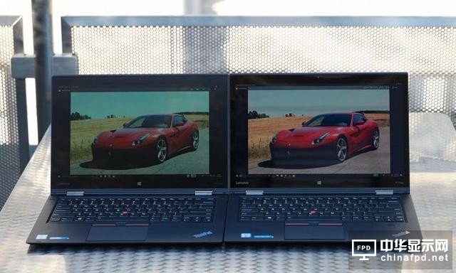 由于OLED屏幕每個像素的亮度可以單獨控制,因此能夠帶來更大的反差效果,這也會讓內(nèi)容變得更加清楚。當我們將OLED和非OLED屏幕的X1 Yoga筆記本放到室外陽光下直接對比的時候,OLED由于具有可調(diào)光性,文字顯示效果(右)甚至比LCD還要清楚。