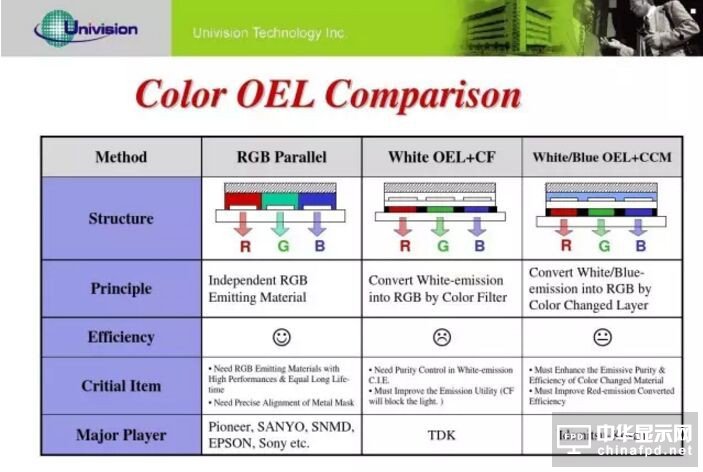 OLED屏幕顏色三種實現方案