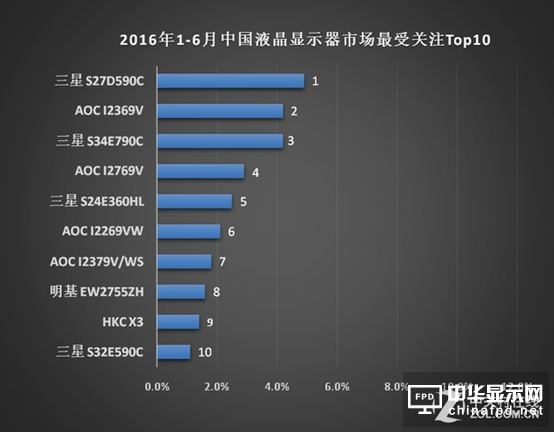 從品牌表現來看,三星也榮膺2016年1-6月最受中國消費者關注的顯示器品牌。第二到第十名分別為:AOC、HKC、LG、飛利浦、明基、戴爾、優派、華碩和SANC。報告還指出2016年中國顯示器市場中的關鍵詞包括“曲面顯示器”、“大尺寸”、“電競顯示器”和“超高分辨率”,而其中“曲面顯示器”的潮流完全可拜三星所賜,通過沉浸感體驗概念的打造和立體傳播攻勢,曲面顯示技術成為2016年顯示器市場最重要并且可靠的救命稻草,重新將廣大電腦用戶的目光吸引回到顯示器市場,三星功不可沒,而關注度上的巨大優勢,也顯著展示了技術創新的巨大能量。