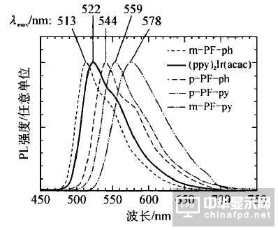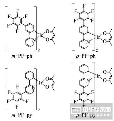 兩者都采用了1一phenylisoquinoline( piq)作為與Ir行cyclometalation的配體,只是前者Ir(piq)3為配體全同(homoleptic) Ir配位絡合物,后者仁(btp)2Ir(acac)為配體不全同(heteroleptic) Ir配位絡合物。
