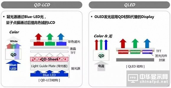 QD-LCD與自發(fā)光QLED結(jié)構(gòu)對比