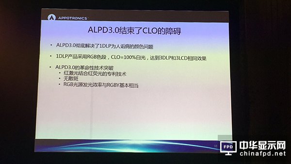 可以說,激光顯示今日之成就,即是建立在ALPD技術之上的“一個勝利接著另一個勝利的康莊大道”。2017年4月11日,光峰在京發布了新一代ALPD技術,即ALPD3.0,把激光顯示產業再次推向新的高潮。