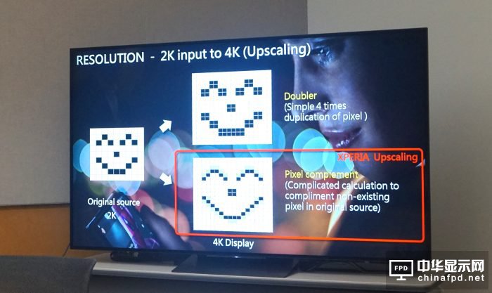此次的 XZ Premium 也延續了使用第一代 4K 屏幕的 Z5 Premium 的一些技術,像是“智能補差點”與“像素倍增”,簡單來說就是讓一些不是 4K 的來源,畫面能變得接近 4K。其中,效果比較好、但必須經由 CPU 運算每一個圖層的“智能補差點”會用在影片與相冊,而“像素倍增”則會用在瀏覽器與手游。不過講解時,Sony 也坦承“像素倍增”的效果會比較普通一點。