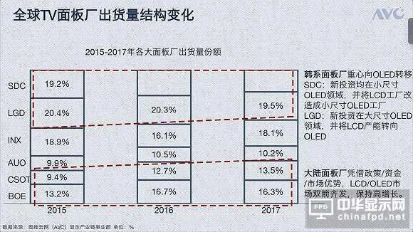 從第三方權(quán)威大數(shù)據(jù)公司奧維云網(wǎng)提供的數(shù)據(jù)看,中國大陸、中國臺灣和日韓的液晶面板產(chǎn)量,已形成三足鼎立之勢,三家的份額都維持在30%左右。而且在產(chǎn)品質(zhì)量、可靠性方面,均沒有太大的差異了。