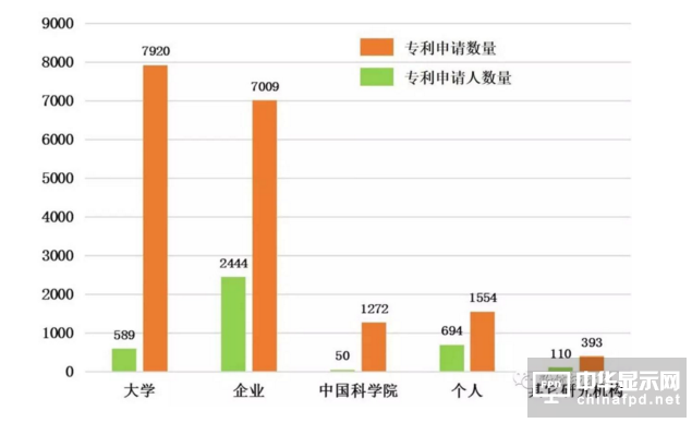 圖8 石墨烯中國國內申請人各單元專利申請人數量、申請數量對比