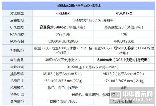 小米Max2和Max有什么不同?小米Max2對比小米Max區別
