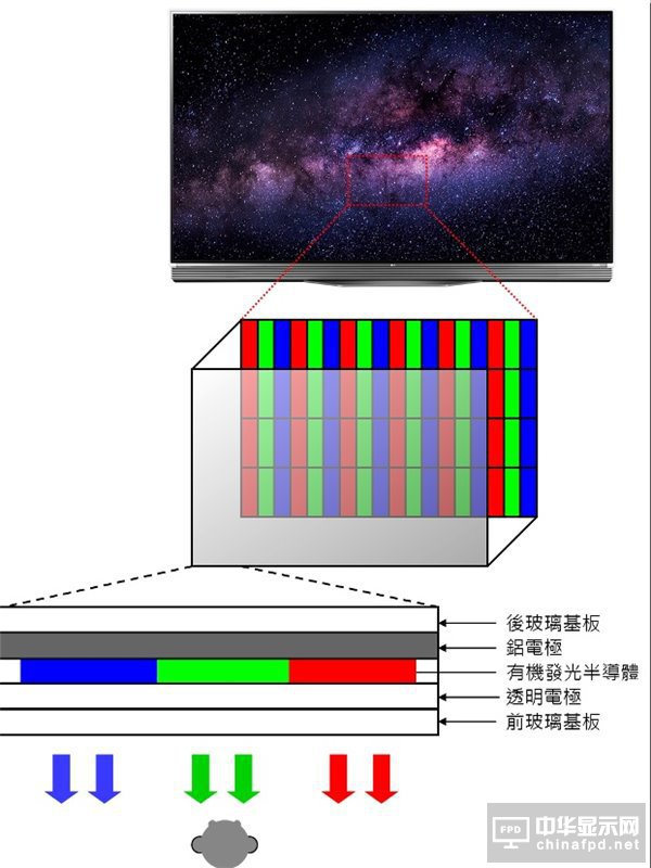 ▲ 圖三:有機發光二極體(OLED)構造。(Source:LG)