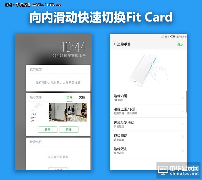 這一次在nubia UI 5.0上,新加入了Fit Card,由屏幕邊緣向中間滑即可呼出。在這里,可以查看最近的文檔、照片、日程等信息,是個人助理一般的存在。且相比起前邊提到的幾項操作,F(xiàn)it Card的呼出操作簡單易上手,實用性得到了提高。