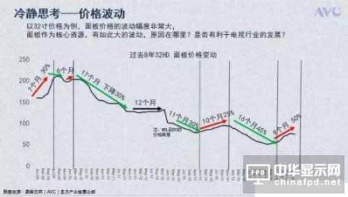 除了面臨面板產(chǎn)能過(guò)剩的風(fēng)險(xiǎn)之外,面板價(jià)格劇烈波動(dòng)也不利于整個(gè)行業(yè)的長(zhǎng)遠(yuǎn)發(fā)展。過(guò)去面板價(jià)格最大浮動(dòng)在30%左右,而到近幾年,價(jià)格的波動(dòng)幅度越來(lái)越大,周期也越來(lái)越短。