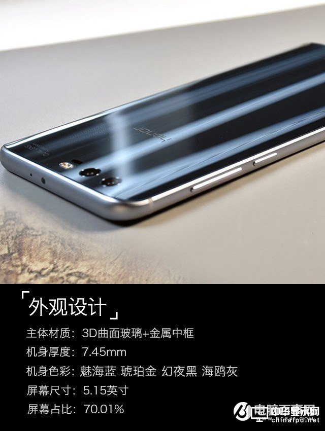 外觀方面,榮耀9的特性是|單手操作方便、精致玻璃機身,后置雙攝像頭、另外是首款前置指紋設計的榮耀手機,設計上相比歷代榮耀手機要成熟。此外,榮耀9還帶來了胡歌版的“海鷗灰”,配色上也有所改變。以下是榮耀9外觀圖解。