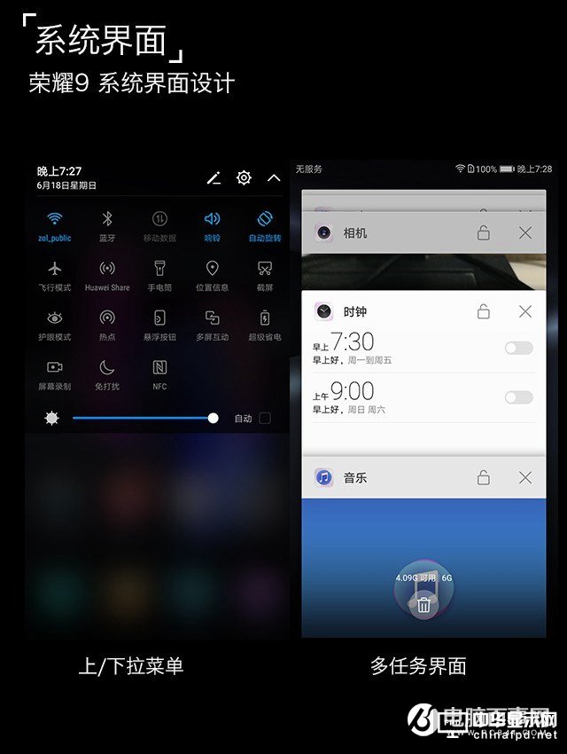 系統方面,榮耀9運行的是基于安卓7.1深度定制的EMUI 5.2系統,界面設計成熟,號稱500天不卡頓,并有金融級安全體驗,在國產ROM中,如今已經屬于一線陣營,以下是系統詳解。