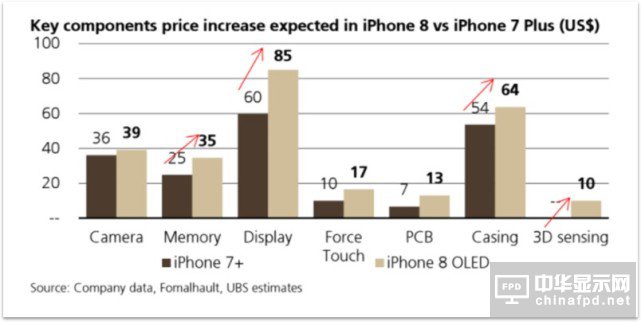 在考慮元器件價格時,瑞銀最近估計,iPhone 8的材料成本與上年的iPhone 7相比將有大幅上漲。