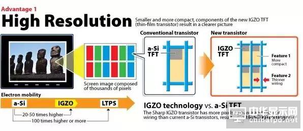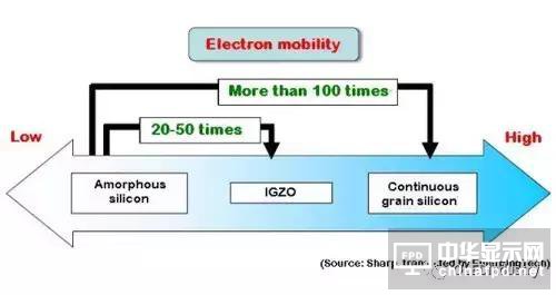 此外IGZO有電子遷移率超過傳統材料的40倍,這樣其也可以大大降低液晶屏幕的響應時間。