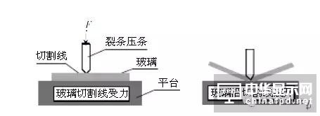 刀輪切割是最為傳統的切割方案,成本低,一般用于直線切割,精度在80um左右。刀輪切割的具體流程是先用刀輪在玻璃上劃出切口,再通過裂片機完成裂片。