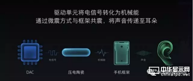 反之,施加激勵電場,介質將產生機械變形,稱逆壓電效應。當電話接通時,驅動單元將電信號直接轉化為機械能,通過微震點擊的方式帶動整機的中框共振,通過空氣將聲音傳遞至耳朵。