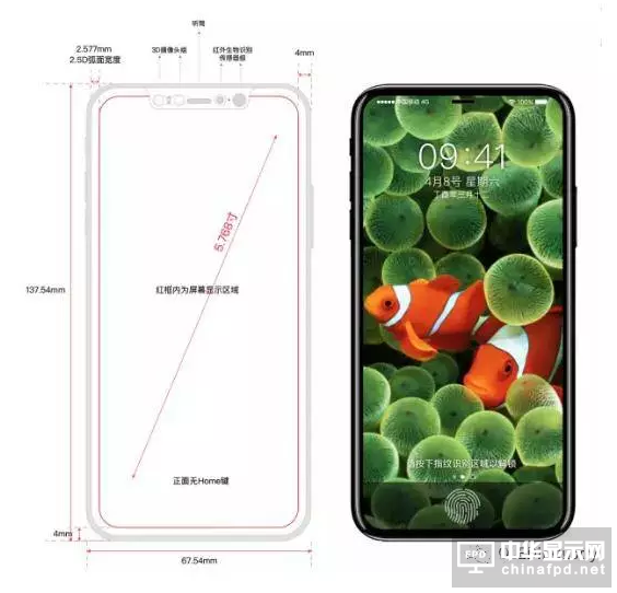 早在一個月之前,已經有人表示iPhone 8幾乎沒有邊框,四邊只有極窄的邊框,只有頂部采用了“凹口”設計,以容納前置攝像頭和聽筒。