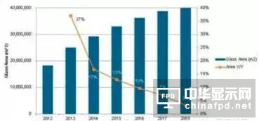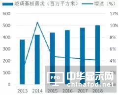 對于需求端:得益于電視尺寸的提升, 預計到18年前, 玻璃基板面積需求以每年4.5%的速率增加。