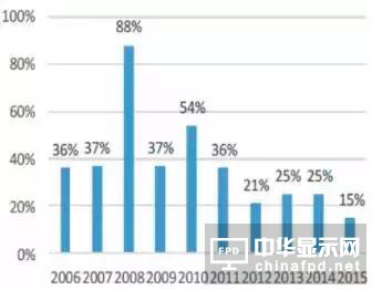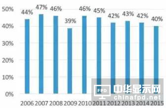從前文可知康寧處于該行業的龍頭地位, 且三星康寧和康寧和合并市場占有率超過50%。以康寧為對標公司可見玻璃基板生產行業毛利一般維持在40%左右, 而凈利潤截至到2015年呈現逐年下降的趨勢(凈利率下降原因未知)。