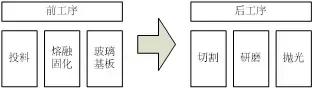 FPD中玻璃可以分為前工序(前端)和后工序(后端)。前端工藝主要是對玻璃基板進行制作, 而后端主要是對前端制作的基板進行切割、研磨和拋光以滿足FPD制作的需要。前端廠和后端廠工藝相對獨立且無需建設在一起, 一般后端廠會建設在FPD面板廠附近, 如此可以在降低成本的同時方便對產線的供應。