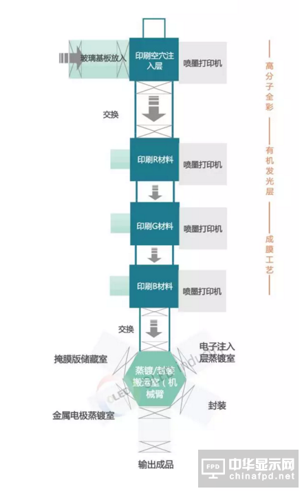 上圖是高恩自EL的生產體系,首先,涂上一層空穴注入層,然后再連續刷上發光層染料,所有層的沉積都采用噴墨打印的工藝。