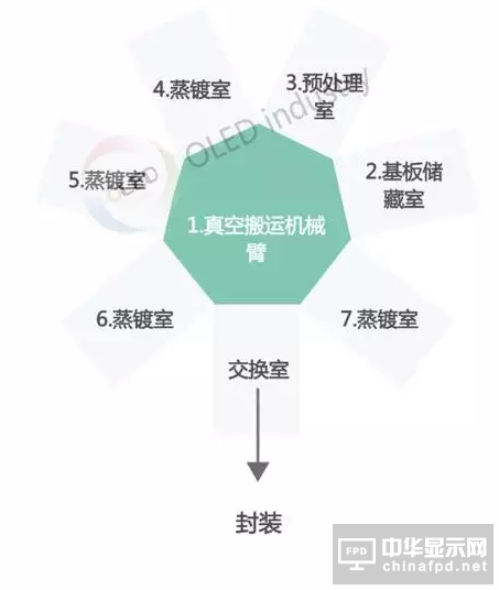 需要注意的是,這個例子是小量生產線的情況,若是企業量產線,圖中的蒸鍍室會有7到8個,而且還有預備室。