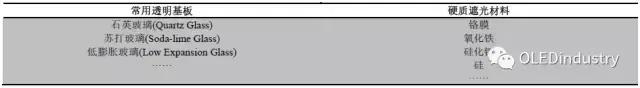 常見的基板、遮光材料以及材料特性如Table 1 和Table 2 (** 資料來源較老2008, 僅能作為參考 **)。