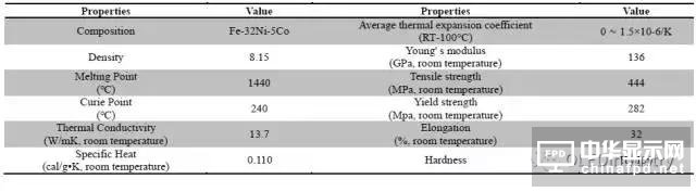 該合金成分比例約鐵50~70%, 鎳29~40%, 鈷15%以下。與其他材料相比, Hitachi Metals 提供的超因瓦合金板的熱膨脹系數趨近于0, 且能夠耐受蒸鍍制程的高溫而不變形。