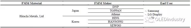其中FMM 原材料由Hitachi Metals 提供, 其后材料會送到FMM 制作商處制作FMM Mask, 并待制作完成后送交到終端客戶手上。#p#分頁標題#e#