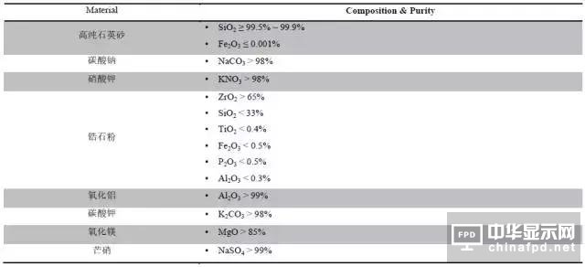 Table 8 高鋁玻璃所需要的材料以及各原材料的純度要求(1)