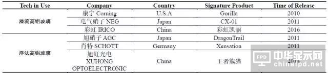 Table 10 全球蓋板玻璃廠商產品和技術(1)