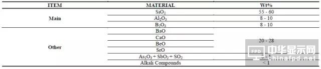 一般TFT 用的玻璃基板成分分為主體材料和其他材料。