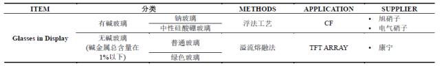 顯示屏生產用的玻璃可以按照其成分分為有堿玻璃和無堿玻璃, 而無堿玻璃根據As 和Sb 的含量不同又分為(3):