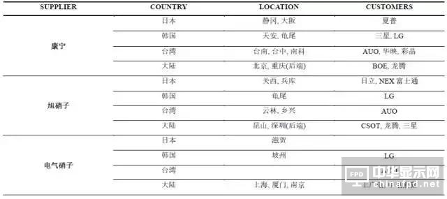 Table 7 2016 年海外主要背板玻璃廠商和產線分布(3)