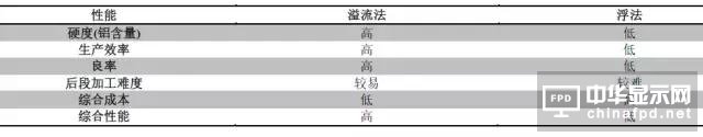 蓋板高鋁玻璃主要通過溢流法和浮法制作。兩個工藝的性能對比如Table 9 所示而全球主要蓋板玻璃廠商產品和采用技術如Table 10所示。