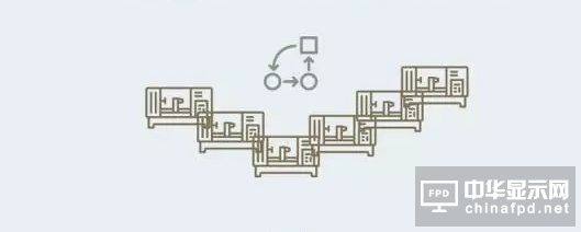 采用真空蒸鍍成膜,包括陰極在內,共有5至6層的有機膜和電極需要進行蒸鍍,現階段使用的成膜設備的結構是每層對應著一個真空蒸鍍室,基板在這些真空蒸鍍室間被來回移動。
